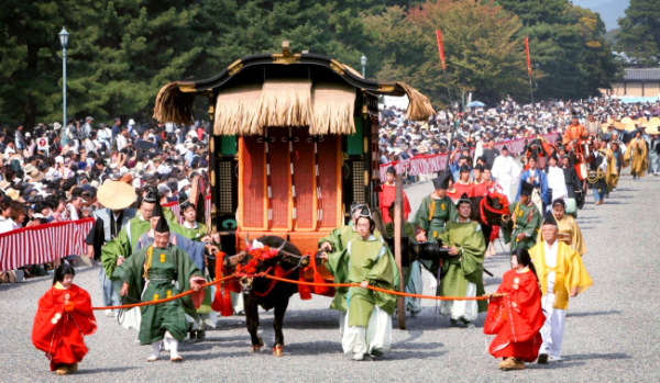 歴史人物になりきり行列に参加するのは総勢2000人、それに、牛馬は70頭あまり、行列の長さが2000メートルにもなります。男性たちの勇ましい姿も見物ですが、女性たちの衣装はまた艶やかです。出発地点の京都御所では、タイミングによって記念撮影をさせてくれることもあるようですから、運よく写真を一緒に撮らせてもらえるかもしれませんね。
